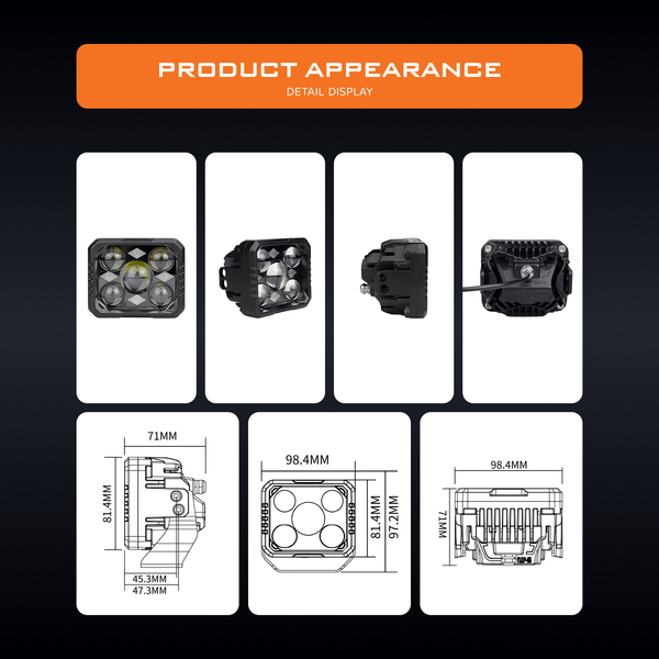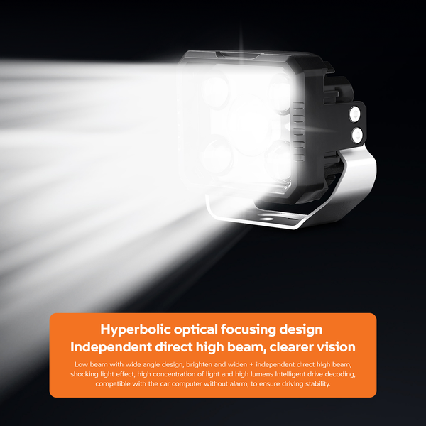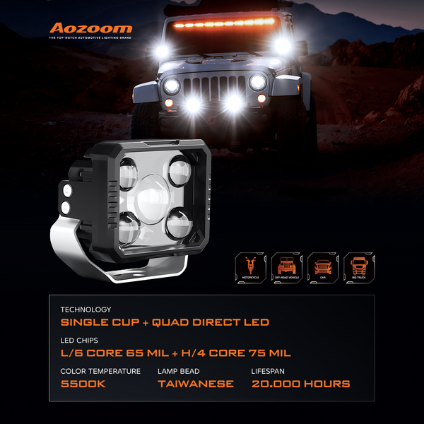 The AOZOOM AE3 4.5-Inch LED Extra Lights are built with single lamp cup + quad direct LED optics for powerful illumination. Delivering 32W low beam and 66W high beam power, AE3 provides wide-angle road coverage with Taiwanese LED chips (6-core low, quad-core high). Its 5500K daylight beam improves visibility and reduces driver fatigue during night drives. Operating within a 9V–16V voltage range, AE3 is engineered for compact vehicles seeking 4.5-inch projector upgrades with superior clarity and durability.