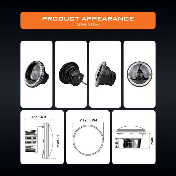 The AOZOOM AE4 7-Inch LED Extra Lights deliver powerful illumination with a single lamp cup + dual TIR + direct injection design. Producing 67W low beam and 82W high beam, AE4 integrates Taiwanese LED chips for maximum brightness and efficiency. With a 5800K color temperature, it delivers clear, crisp visibility that improves safety during nighttime driving. Engineered to operate on a 9V–16V range, AE4 is designed for vehicles needing 7-inch headlight upgrades with wide road coverage, long lifespan, and stable output under AOZOOM’s German quality standards.