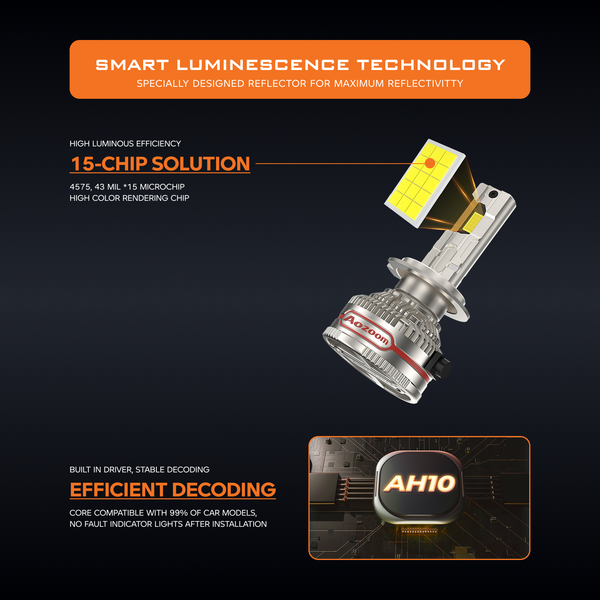 Achieve high-performance lighting with the AH10 LED bulb. Delivering 7,500 lumens and 110W of power, it features advanced 4575 chip technology for superior 6000K clarity. With wide 9–32V compatibility, this LED headlight bulb ensures reliable performance for diverse vehicle applications.