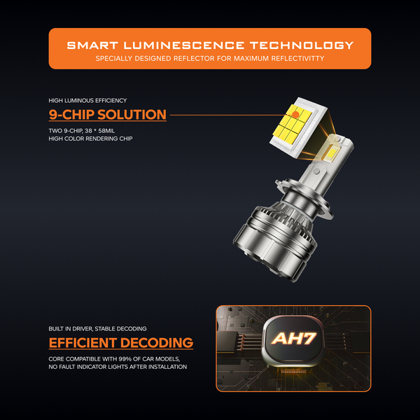 Engineered for drivers who demand brilliance, the AH7 LED bulb offers 6,000 lumens of clear 6000K lighting. With its 85W power and advanced 9-chip system, it ensures superior illumination and safer driving at night. Built with durable imported lamp beads, it delivers efficiency and longevity.